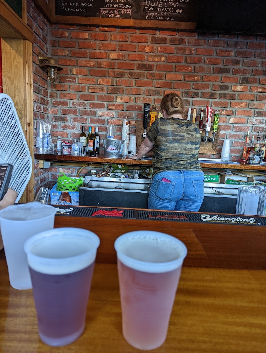 A must visit! Service is great with friendly bartenders. Cold beer, and reasonable drinks! Atmosphere is cool even on the slow days. You can feel the rich history of this little town when you visit Backstreet Pub!